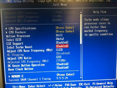くまなくチェックしてみるとCellMenuの欄にIntel Turbo Boostがありました!ここをEnabled(有効)に変えます。